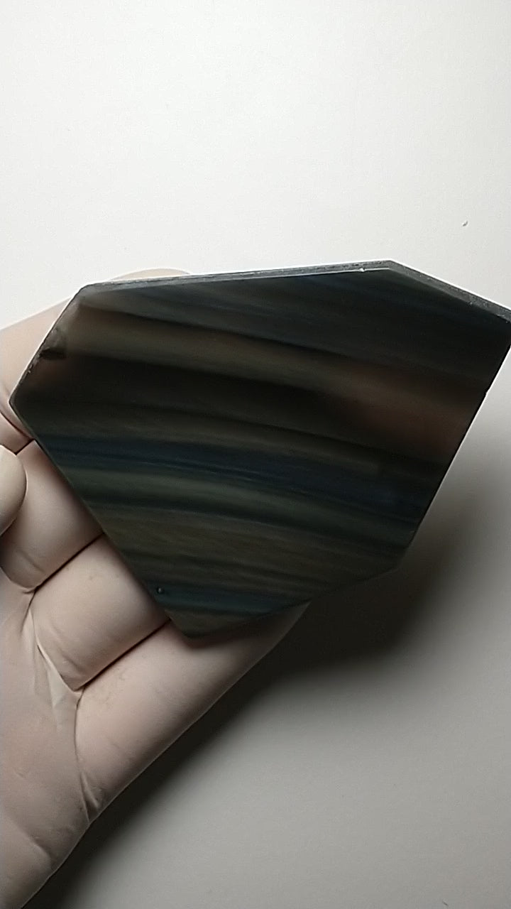 Experience the captivating magic of Rainbow Obsidian slabs, a volcanic treasure that reveals shimmering bands of color when polished or viewed in the right light. Perfect for lapidary artists, collectors, and crystal enthusiasts, this gem blends mystery with a burst of natural radiance.